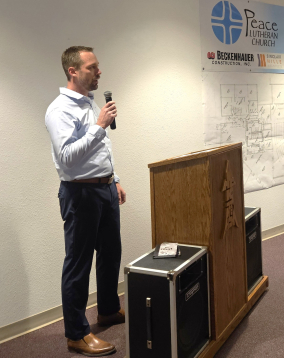 Robbin Cutsor, Treasurer of the Board at Peace Lutheran Church, welcomed those in attendance and thanked the many board members who worked over the past four years to bring the project to life, inviting them to stand and be recognized. Pastor Cory Burma then led the congregation in prayer before Columbus Mayor, Jim Bulkley, addressed the group. Mayor Bulkley spoke about the important role Peace Lutheran plays in the community, not only as a place of worship but also as